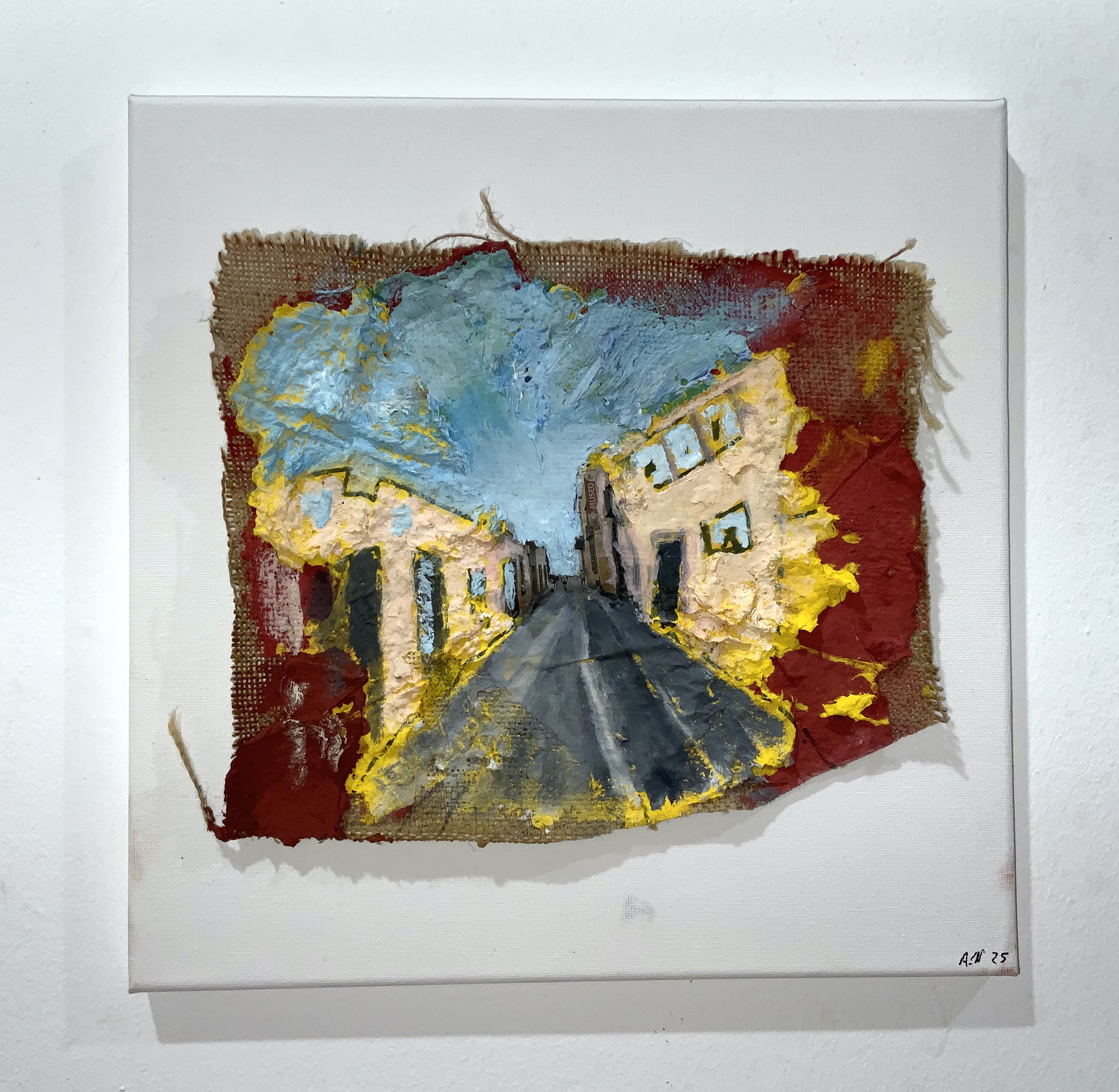 The exhibition consists of 21 small and medium-sized works. He has called it “The Continuation of the Places Where I Live,” where, starting from previously processed digital images, he fuses them into paintings with paint, pigments, pencil, etc., confusing them and creating, from a realistic image, an entrance to other worlds, to other desires.