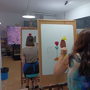 El pasado noviembre empezamos las clases en Soppa de Azul y estamos muy contentos de cómo hemos empezado. Tanto Elena con los niños de hasta diez años, como Alecs con jóvenes y adultos han empezado con buen pie. Marta, Klara, Dana, Mici son algunas de las personas que ya asisten a las clases, también personas que vienen por un día o como Maica que vienen silla de ruedas y lo pasamos estupendo pintando juntos.